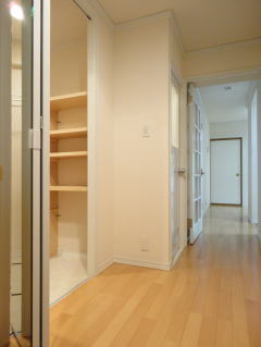 ←↑↓玄関横にあるウォークインクローゼットは大鏡がドアになっており、お出かけ前の身だしなみ「ファッションチェック」が可能です。 |